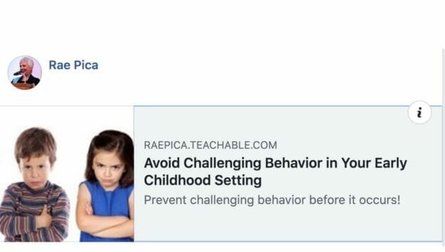 You can find more details about Rae’s course, which is live now, here: https://raepica.teachable.com/p/avoid-challenging-behavior-in-early-childhood-settings/
